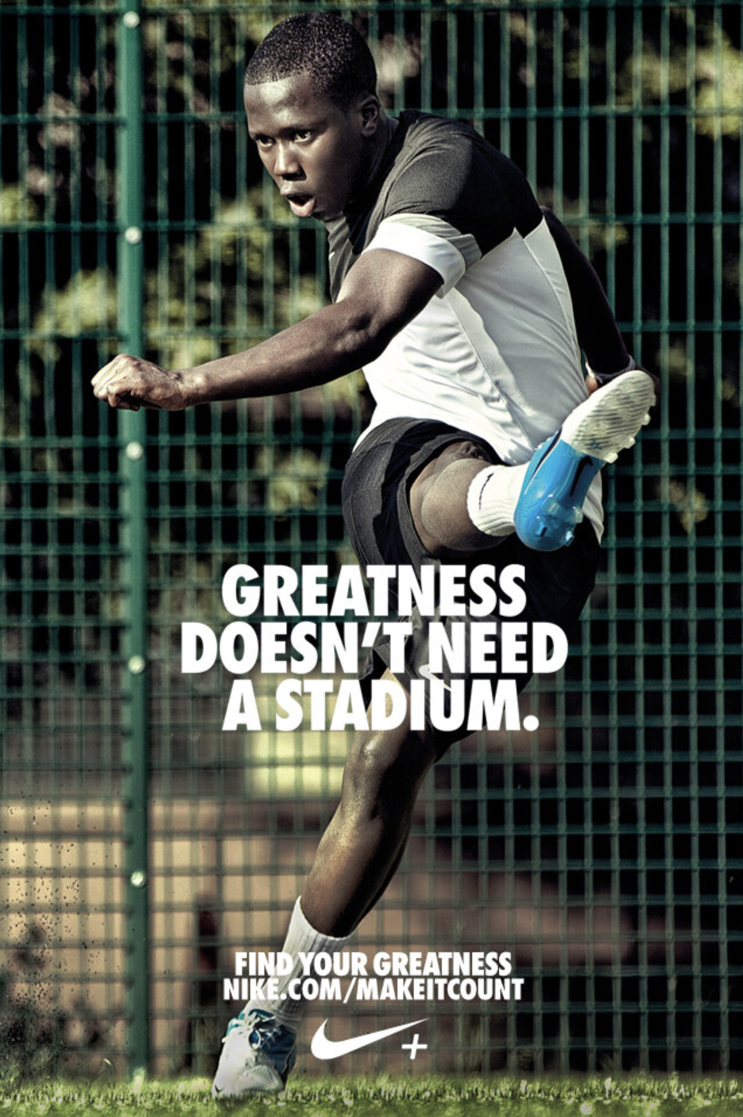 Nike’s campaign around the London 2012 Olympics. The convention says greatness is reserved for superstars, for the ones who are participating in the big event in the chosen city.